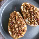 These Baked Pears with Pecan Crumble lasted about 5 minutes in my house – they are delicious to say the least!. My husband loved them so much that he bought a dozen pears at Costco last week so that I could make them again – that’s a good sign in my book that a recipe was a success!