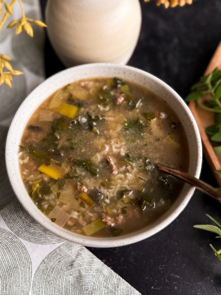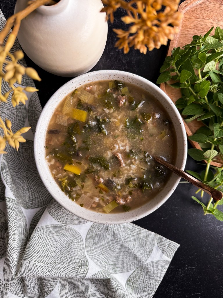 My new favorite soup recipe! I feel like I say that every time a post a new soup recipe, but I just looove soup. It’s always been one of my favorite meals because it’s so cozy, nourishing, and light. It’s also such a great way to use up whatever veggies and herbs you have on hand. My garden is BOOMING with oregano right now, so I knew I needed to cut it way back and add tons to a soup. This Beef & Rice Soup with Fresh Oregano is a perfect way to use up all that garden oregano and enjoy the flavor and nutrients that come along with it.