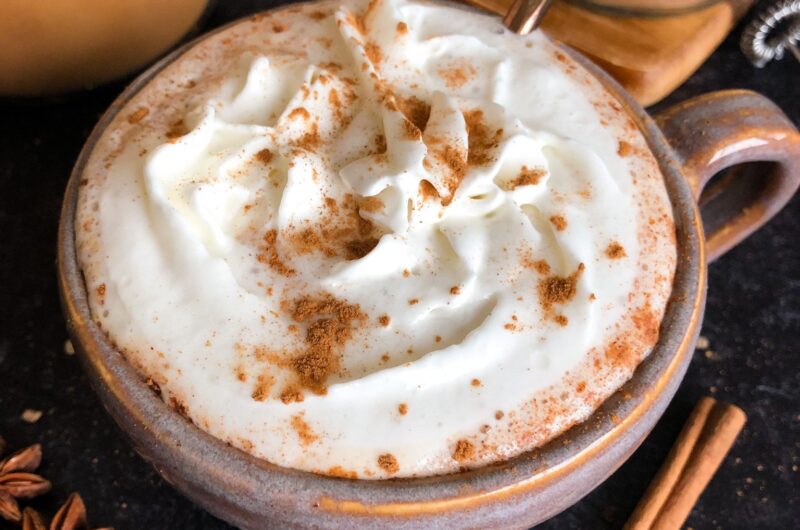 It is thick and creamy with a perfect combination of delicious chai spices. A bonus would be if you use a milk frother to mix everything together in the pot. This adds a frothy texture which is amazing. You can also accomplish it by whisking by hand, but it’s a bit more work and you may not get it quite as frothy as if you used a milk frother. You can then top it with a sprinkle of cinnamon, or whipped cream, or both.