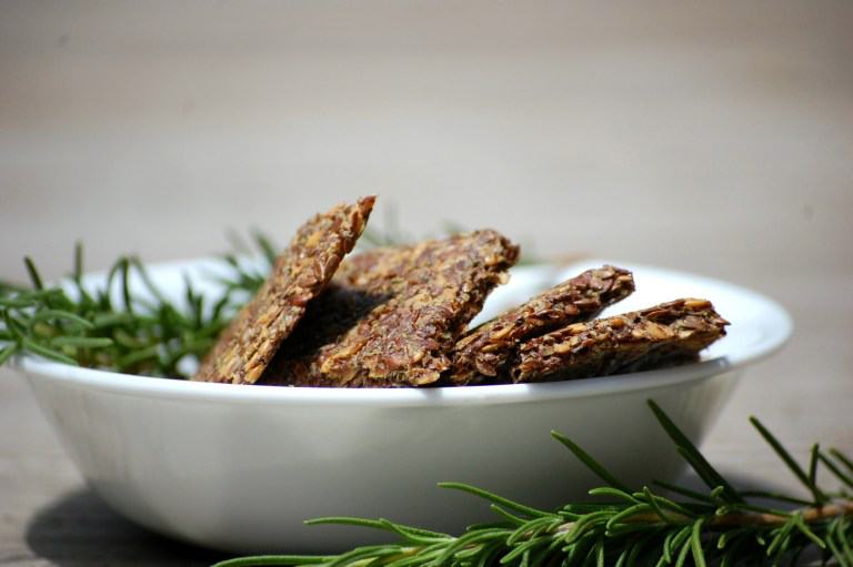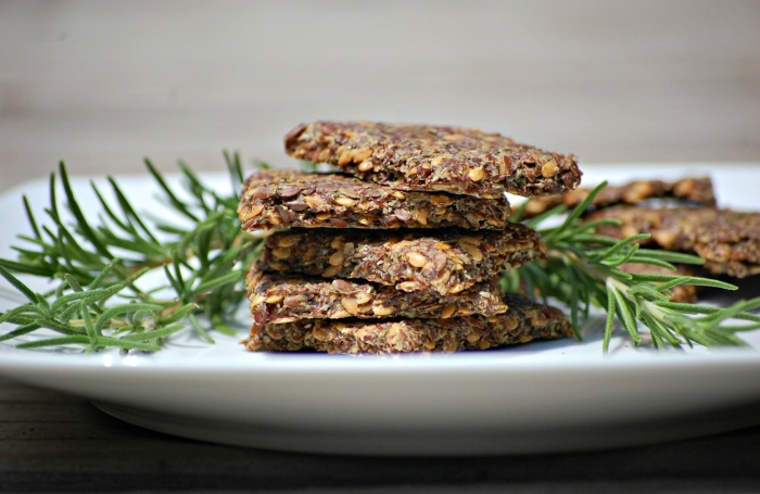 Crunchy Rosemary and Garlic Flaxseed Crackers