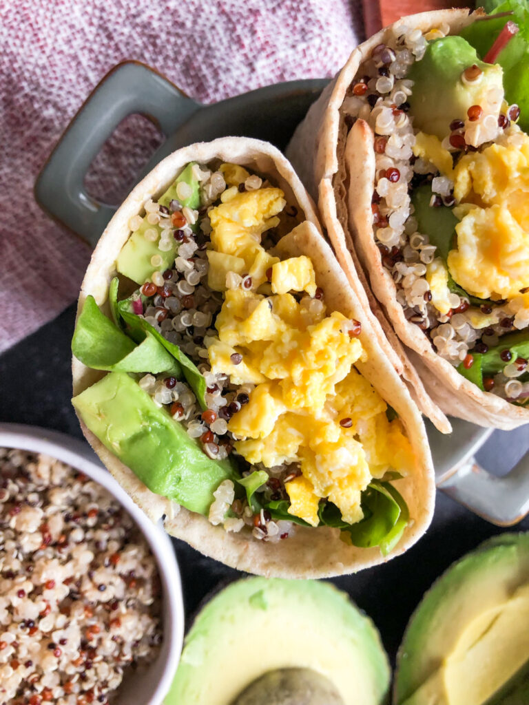I meal prep quinoa pretty often to have on hand for nourish bowls, so it’s super easy to add into other meals such as wraps and salads. These Easy Quinoa Breakfast Wraps are perfect way to use up leftover quinoa (or even rice if that’s what you typically have on hand) and it’s delicious and nourishing.