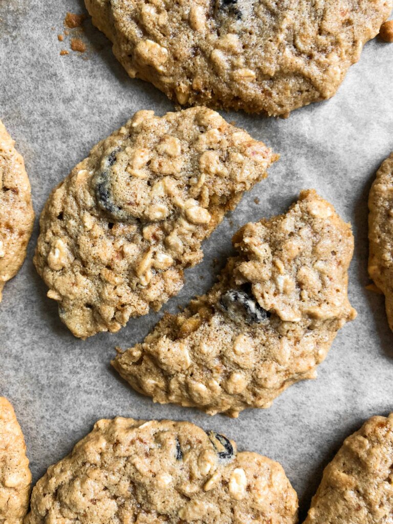 These cookies have the perfect chewy, warm, buttery flavor that oatmeal raisin cookies are known for, but they’re healthy! Oatmeal raisin cookies are honestly my favorite cookie! I love everything about them: the flavor, the texture, the warmth, and everything in between. If you don’t like raisins, then feel free to sub chocolate chips. You can also make them dairy free by subbing the butter for softened coconut oil, but keep in mind it’ll change the flavor quite a bit as oatmeal raisin cookies are known for their buttery flavor!