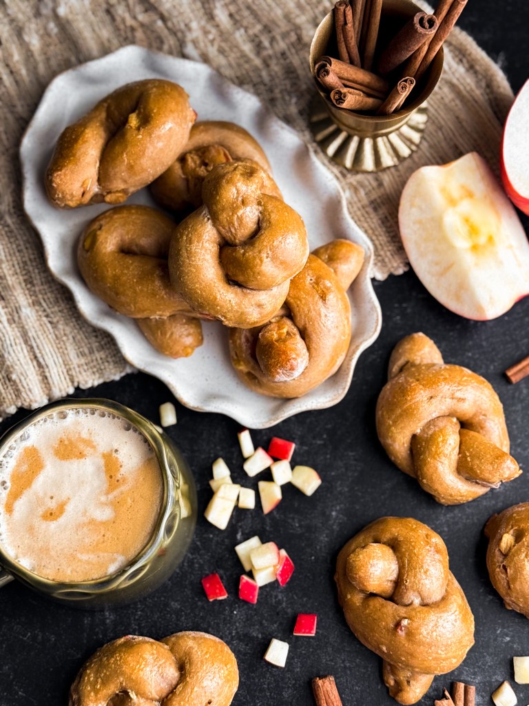 key words: High-Protein Apple Cinnamon Bagel Knots, cinnamon apple bagel knots, high-protein bagel knots, greek yogurt bagels, yogurt bagels, greek yogurt bagel knots, yogurt bagel knots, healthy bagel knots, easy bagel knots, how to make bagel knots, homemade bagel knots, apple cinnamon, cinnamon apple, nut-free recipes, healthy breakfast, healthy snack, high-protein breakfast, high-protein snack, holidays, thanksgiving, fall, autumn recipes, fall recipes, healthy fall recipes, healthy recipes for fall