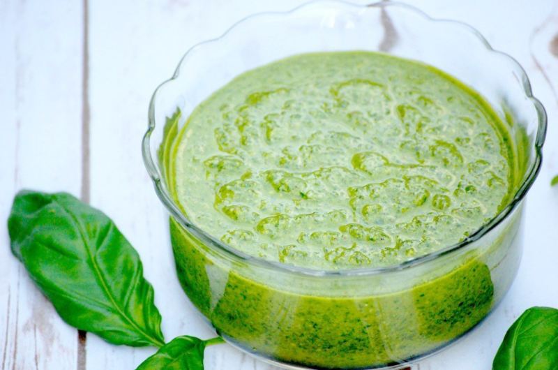 You’re going to love how easy and flavorful this pesto recipe is with just a handful of simple ingredients. It’s actually made without pine nuts so it’ll save you some money as well! Here’s what you’ll need: