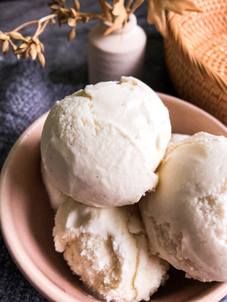 If you’re searching for a healthier version of ice cream, then this Homemade Vanilla Bean Ice Cream is it! It’s delicious and indulgent but it also prioritizes higher quality ingredients. The ingredient quality makes a huge difference for any meal, but especially dessert! There’s no need for highly refined white sugar, high fructose corn syrup, or other additives when you can stick with the basics.