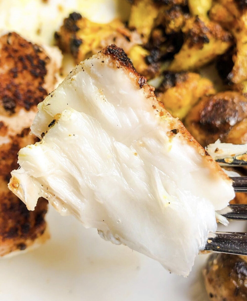 - Preheat a cast iron skillet to medium heat with olive oil or avocado oil. Add cauliflower florets and season with the turmeric, black pepper, and salt. Cover the skillet and cook the cauliflower for about 4-5 minutes. Remove the cover and add the Mahi Mahi filets (put the seasoned side face down). Cook for several minutes uncovered, until the filets are browned and crispy, then flip over and cook another few minutes, still uncovered.