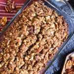 - Evenly disperse the pecan streusel on top of the batter.