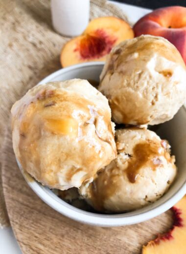 Homemade Peach Ice Cream with Maple Caramel Sauce Dessert, Gluten-Free, Nut-Free September 20, 2023 3 comments