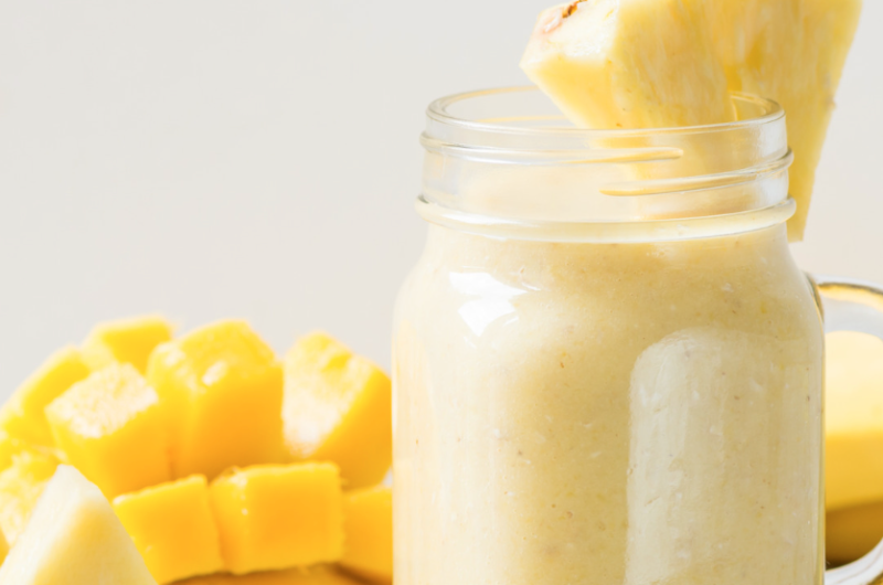 You have a mildly sweet flavor from the pineapple and mango, a tangy flavor from the lemon juice and lemon zest, and a touch of warmth from the ginger root. It’s a perfect layer of flavor! If you want the smoothie even sweeter, then feel free to add 1/2 frozen banana or a tablespoon of honey, which will add even more depth to the smoothie.