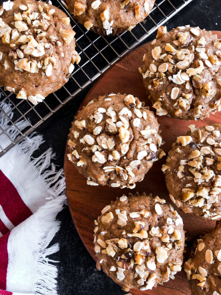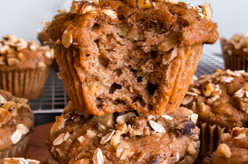 Banana muffins are something I make frequently because I always seem to have overripe bananas on hand (wow they ripen fast!!). Truly, these Whole Wheat Banana Muffins are currently my favorite because they are hardy, filling, and delicious. I absolutely love the texture from the rolled oats (and you can add chopped nuts too). They’re the perfect snack or breakfast with a hot cup of coffee.